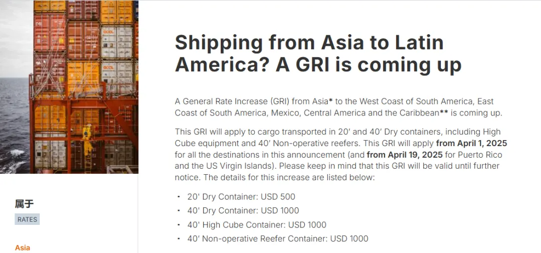 具體生效日期方面,該GRI將于2025年4月1日起適用于公告中列出的所有目的地,但波多黎各和美屬維爾京群島則將于2025年4月19日起開始適用。此外,赫伯羅特指出,此次GRI的有效期將持續(xù)至另行通知。