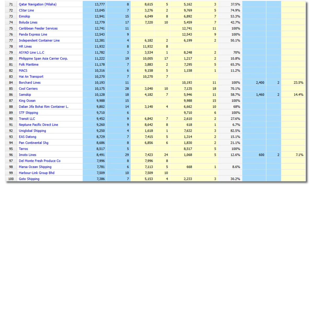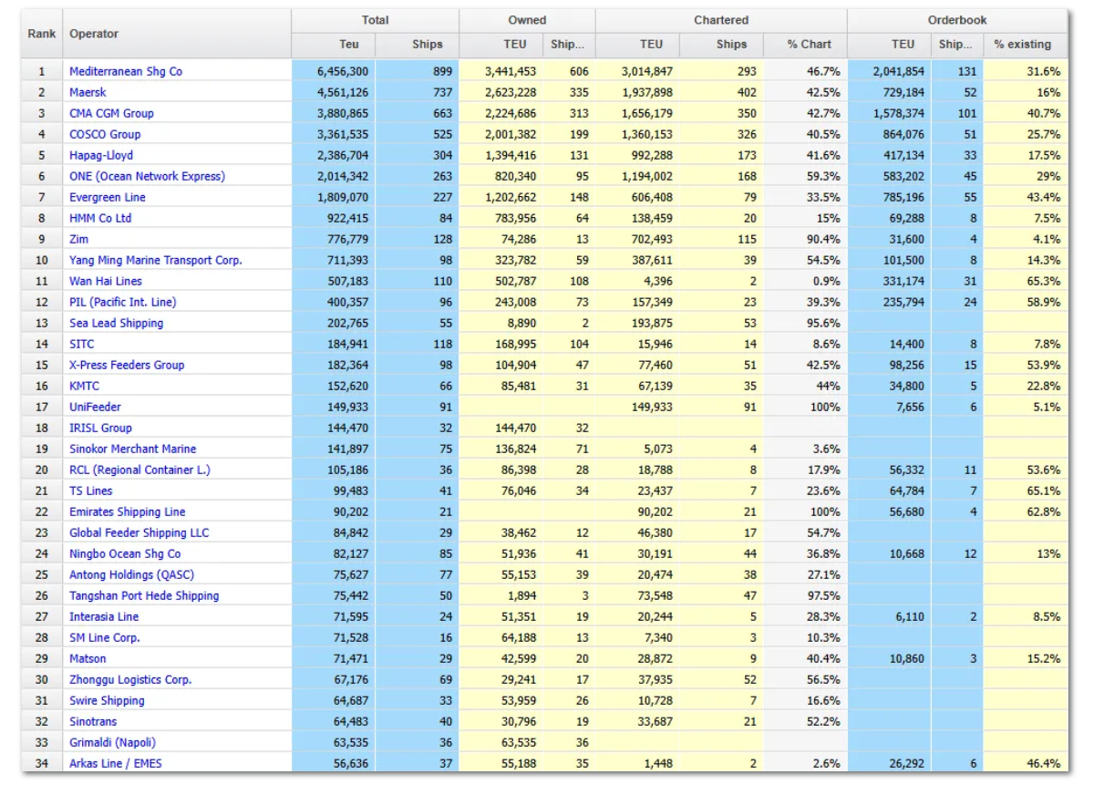 2025年4月1日,根據(jù)Alphaliner最新統(tǒng)計數(shù)據(jù)顯示,全球共有7,277艘集裝箱船舶,運(yùn)力達(dá)到31,989,393TEU,合計船舶載重噸為379,570,222DWT (DEAD WEIGHT TONNAGE 縮寫,載重噸)。